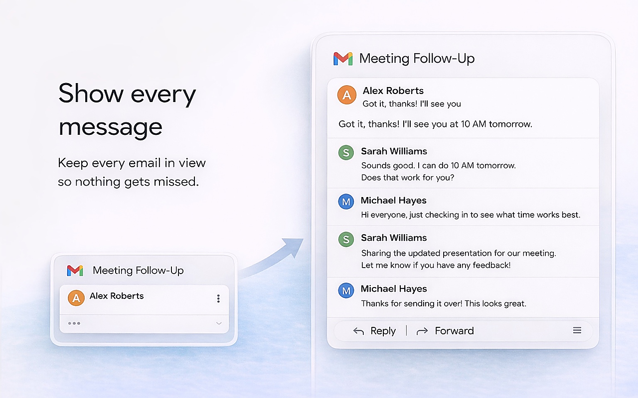 - Контекстные быстрые ответы: Gemini формирует предложения для ответов, основываясь на предыдущих сообщениях и текущем контексте переписки, улучшая скорость общения.