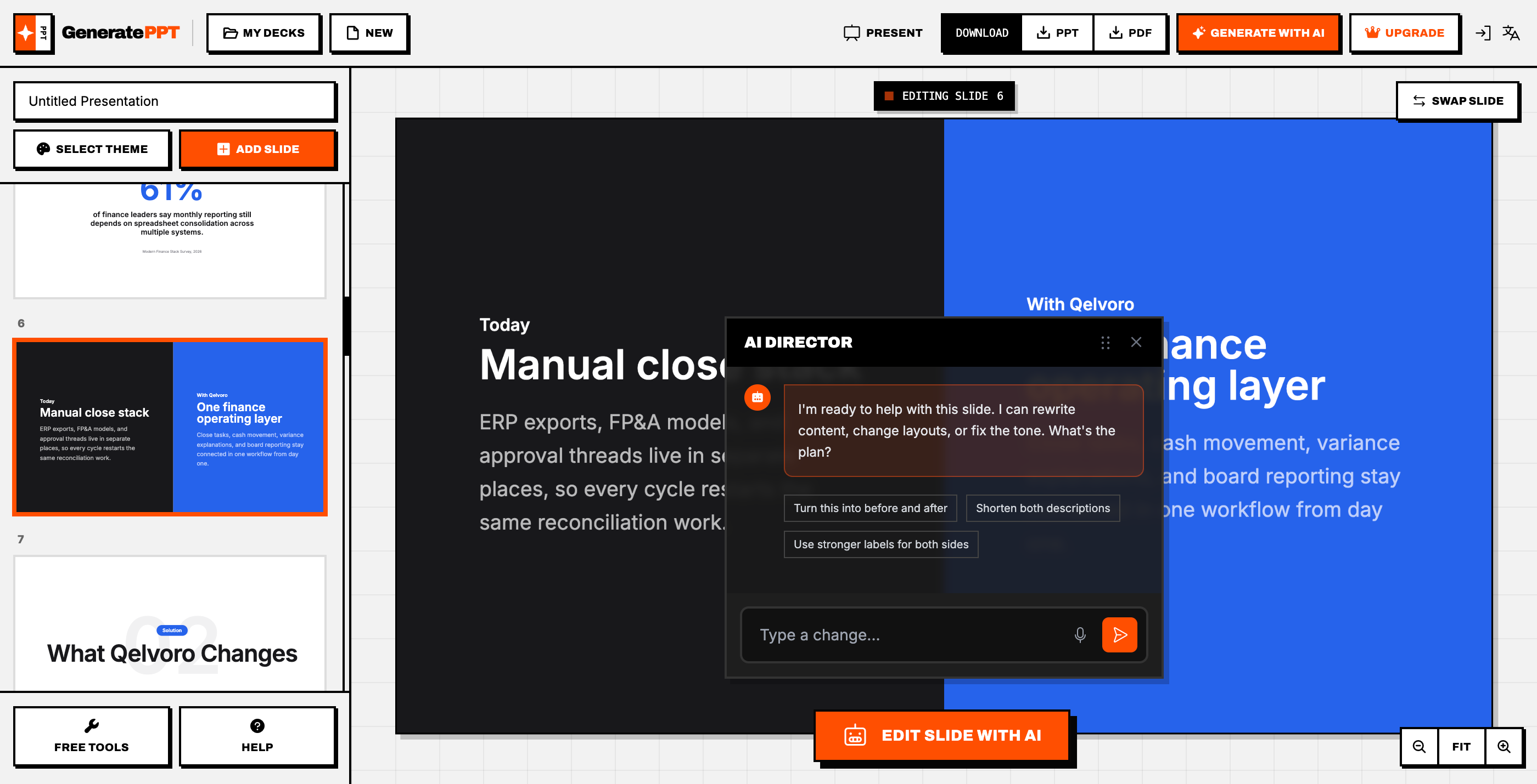 - Мгновенное преобразование: PPT AI может быстро конвертировать документы, электронные таблицы, аудио или видео в более чем 20 профессиональных слайдов за считанные секунды.