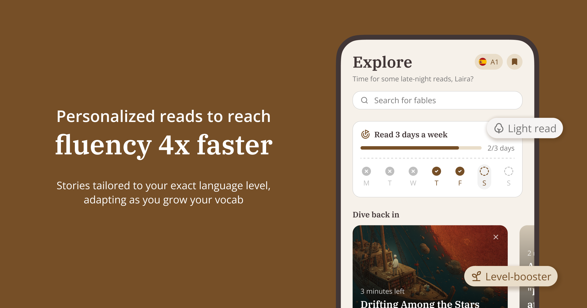 Lingofable — это инновационный сервис для изучения иностранных языков, основанный на методе погружения в адаптированные тексты. Вместо зубрёжки отдельных слов и правил сервис предлагает читать увлекательные истории, идеально подобранные под ваш текущий уровень. Это прямое применение теории Стивена Крашена о «всемирном вводе» (comprehensible input), подтверждённой более чем 40 годами исследований в области усвоения языка.