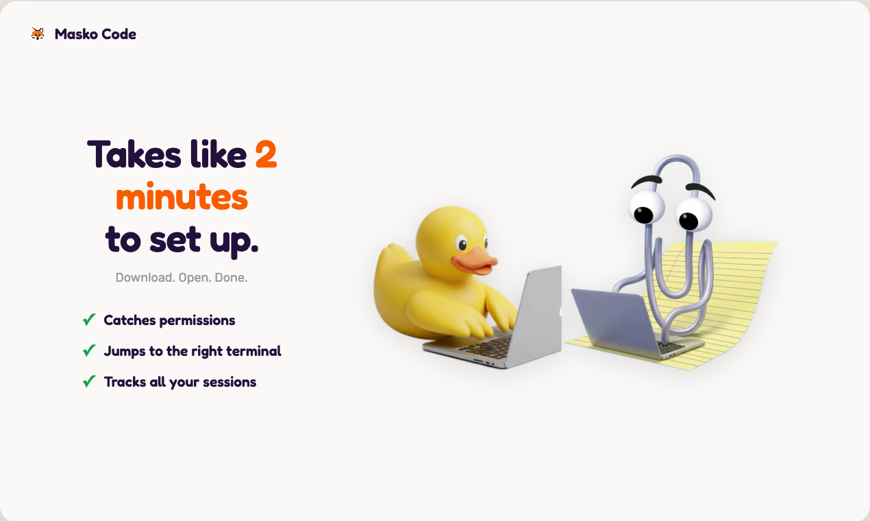 Masko — это бесплатное и open-source приложение для macOS, представляющее собой визуальный «компаньон» или маскот, который помогает следить за сессиями инструмента для вайб-кодинга Claude Code в реальном времени. Это оверлей, который плавает поверх всех окон, отображает статус сессий, уведомляет о необходимости действий и позволяет управлять разрешениями без переключения контекста.