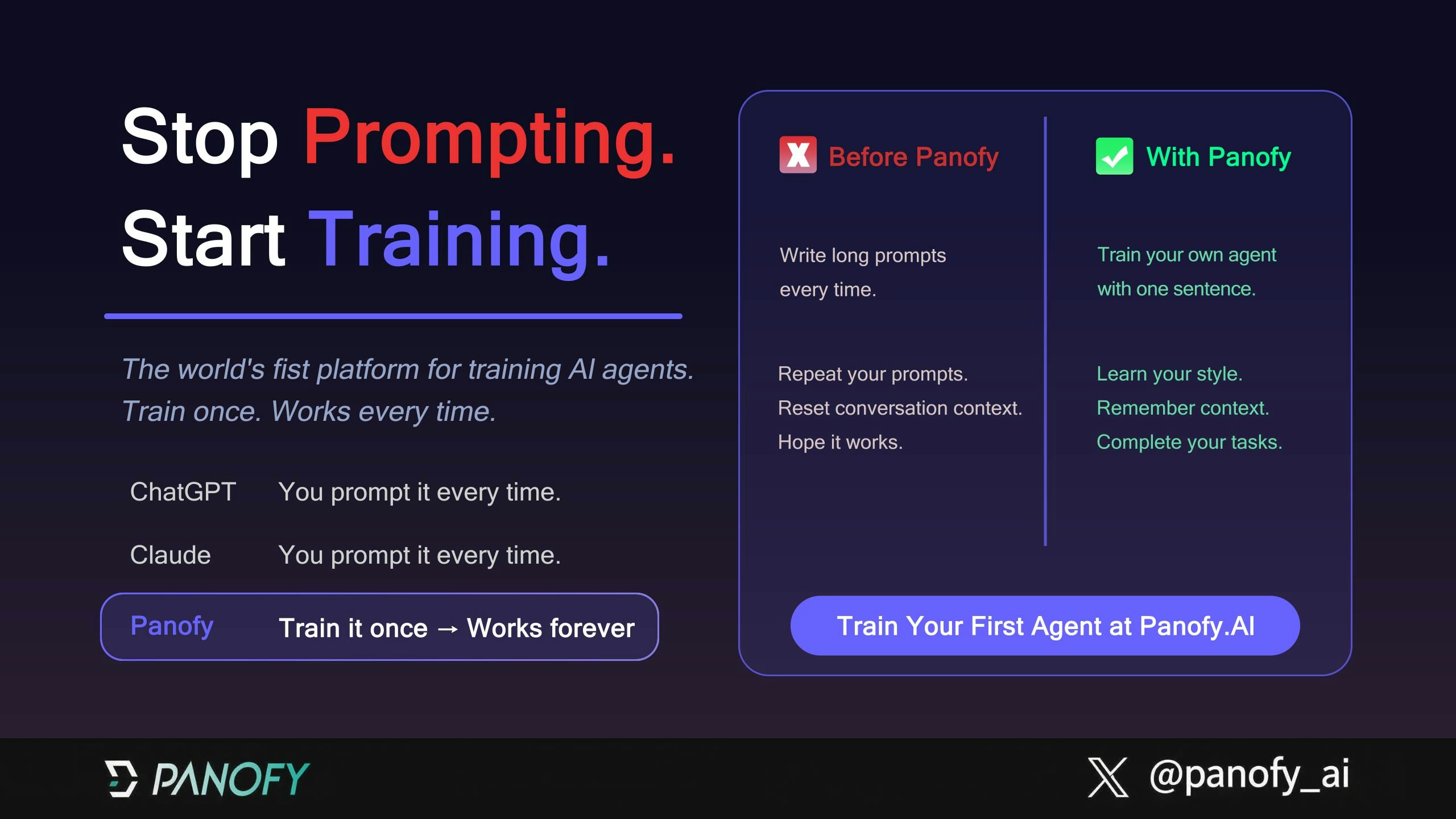 Panofy фокусируется на создании агентов, которые обучаются на ваших специфических знаниях и рабочих процессах. Это означает, что разработка и внедрение таких агентов становится доступным для любой компании, независимо от её размера или отрасли, что решает проблему недостатка квалифицированных специалистов и ресурсов для ручной работы.