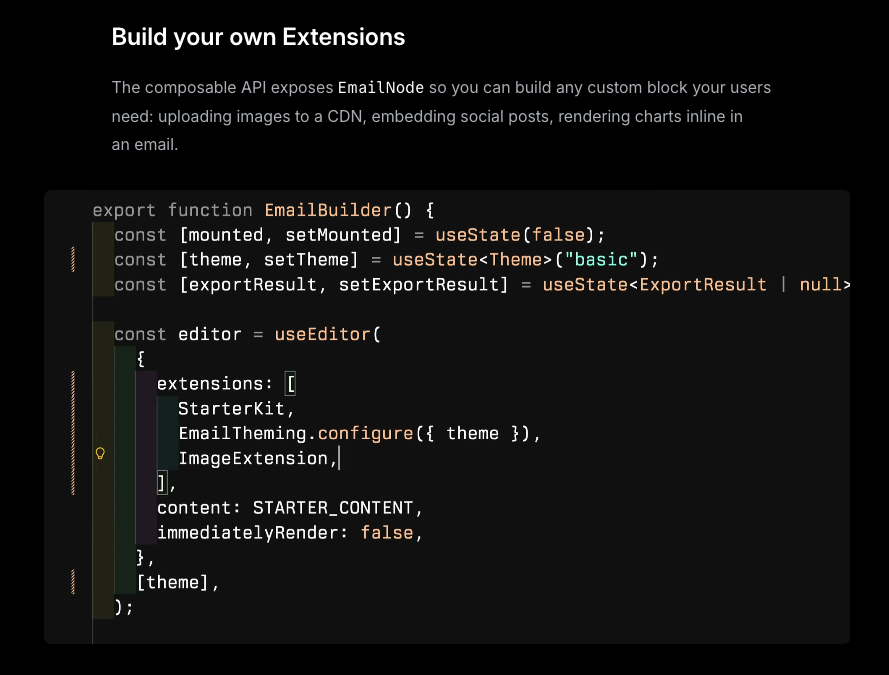 - Открытый редактор: Визуальный редактор можно встроить в ваше приложение, позволяя пользователям редактировать и создавать письма непосредственно на платформе.
