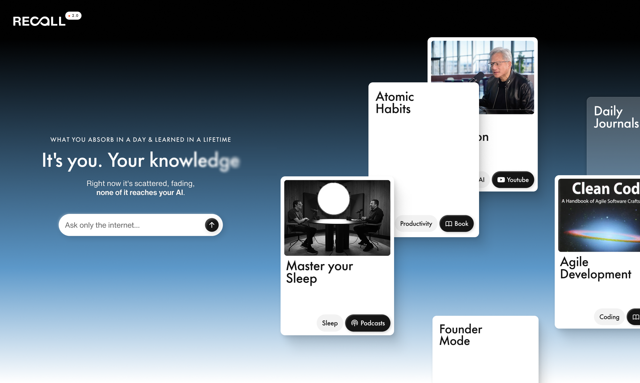 Recall — это современное решение для организации личных знаний и информации, применяющее искусственный интеллект для создания интуитивно понятной базы данных. Этот инструмент позволяет пользователям сохранять, систематизировать и быстро извлекать важные сведения, что чрезвычайно полезно в условиях перегруженности информацией. С Recall у вас будет возможность создать собственную «вторую мозг», который запоминает и связывает данные из множества источников, включая статьи, подкасты и видео.