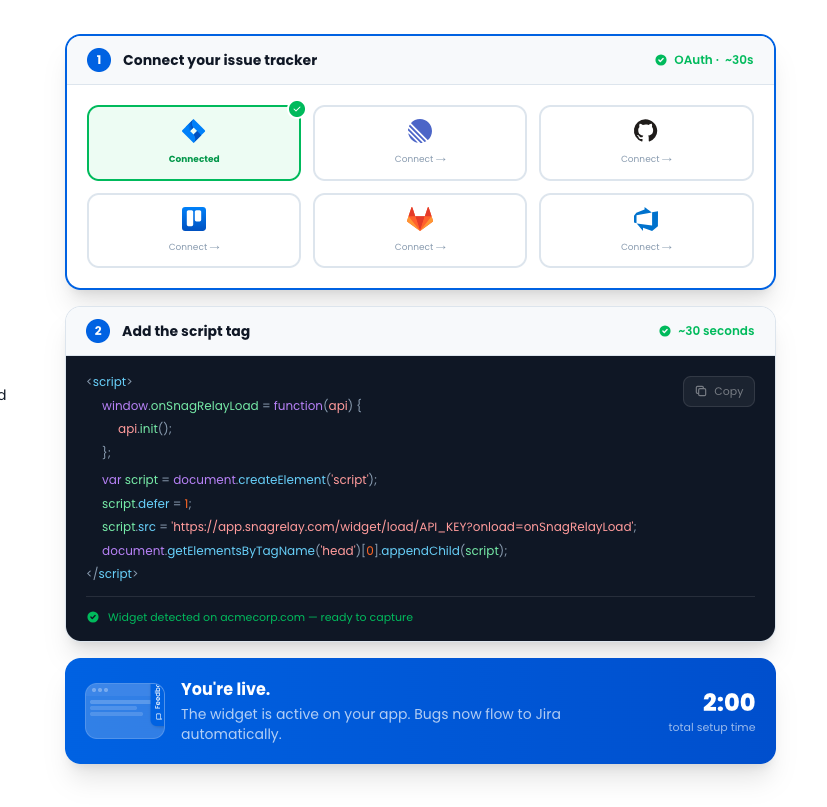SnagRelay решает ключевую проблему взаимодействия пользователей и разработчиков: делает процесс подачи отчетов о проблемах более удобным и менее времязатратным. С помощью простого интерфейса пользователи могут удобно собирать необходимую информацию о проблеме, которая сразу же попадает в систему отслеживания задач, что позволяет разработчикам немедленно принимать меры. Инструмент особенно полезен для небольших и средних команд, которые хотят повысить эффективность разработки.