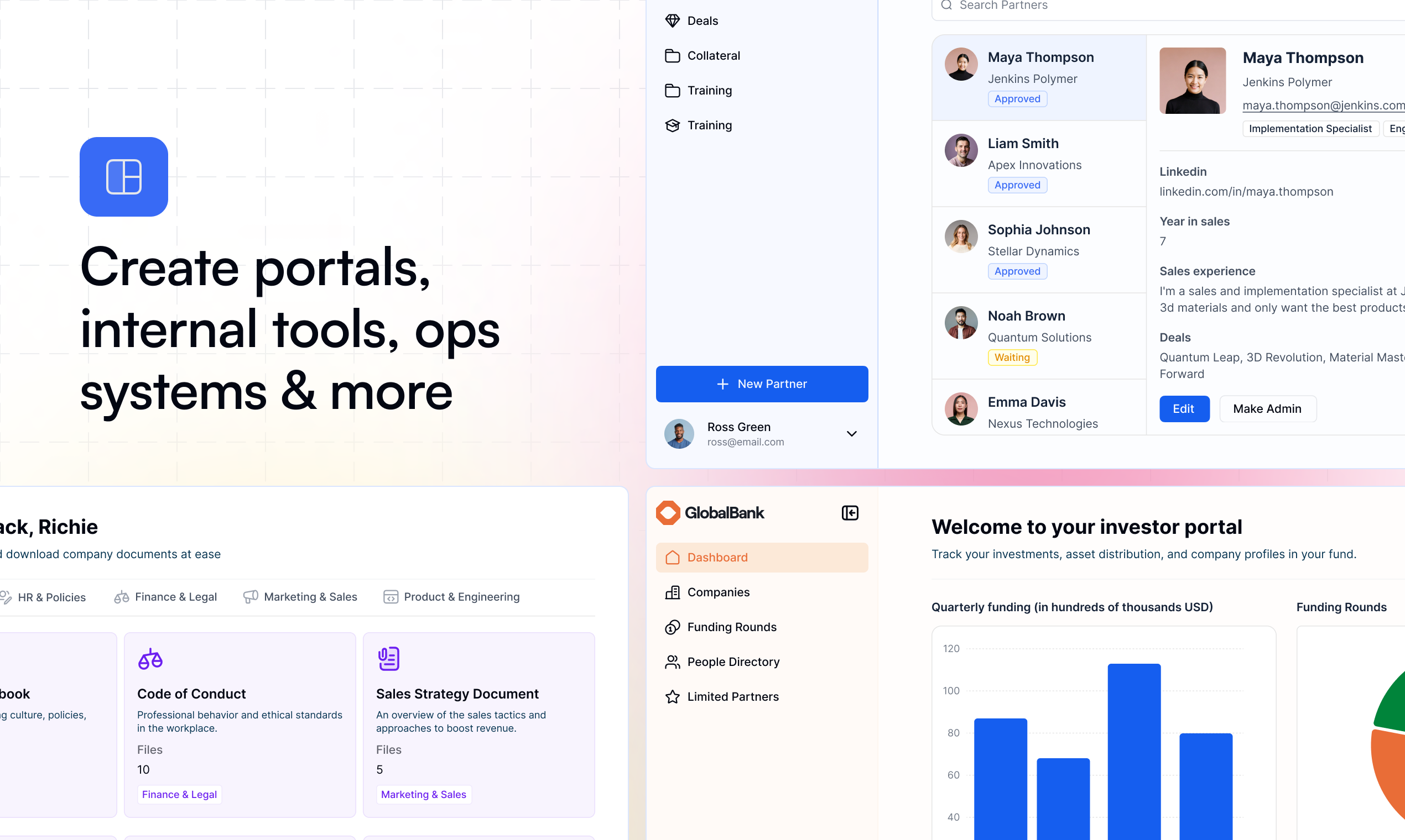 Softr идеально подходит для малых и средних бизнесов, маркетологов, отдела продаж, HR и менеджеров проектов. Это инструмент, который может использовать любой сотрудник компании, независимо от уровня технической подготовки. Например, маркетологи могут быстро создать клиентские порталы, а HR — автоматизировать процессы рекрутинга и управления персоналом, не привлекая IT-отделы.