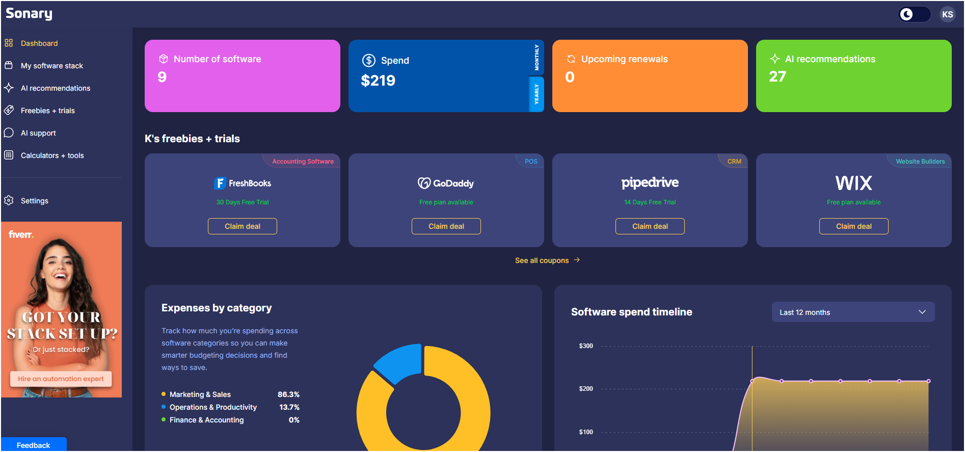 Sonary Booster — это инновационный инструмент, созданный для мониторинга расходов на программное обеспечение для бизнеса. Он нацелен на решение проблемы неэффективного использования SaaS-продуктов, что часто приводит к ненужным затратам. Благодаря мощной аналитике и интеллектуальным рекомендациям, Sonary Booster помогает пользователям сократить лишние расходы и оптимизировать свои расходы на программное обеспечение.