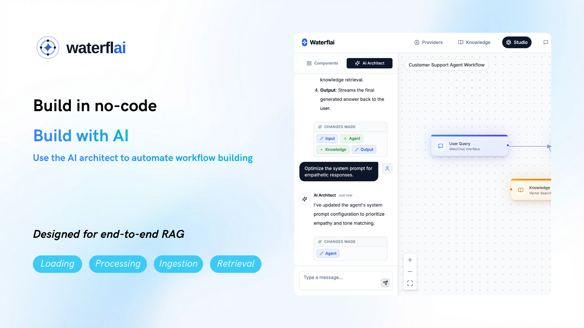 Waterflai - это мощная платформа для разработки и развертывания AI-агентов без необходимости в программировании. Она позволяет пользователям создавать сложные рабочие процессы, используя наглядный интерфейс. В отличие от традиционных методов разработки, где требуется много времени для настройки, Waterflai предлагает инструмент, который позволяет командам быстро реализовать задумки, превращая идеи в работающие решения всего за считанные минуты.
